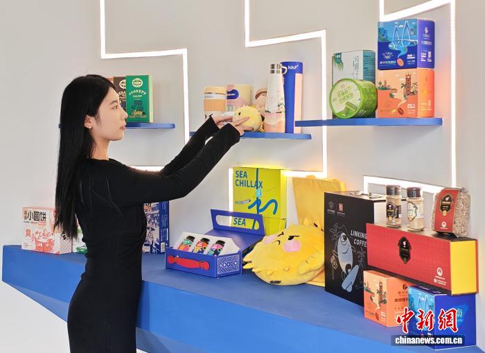 12月5日,海口市跨境电商协会秀英区运营核心职业职员正正在直播选品区上架“海南特礼”。中新社记者 王子谦 摄